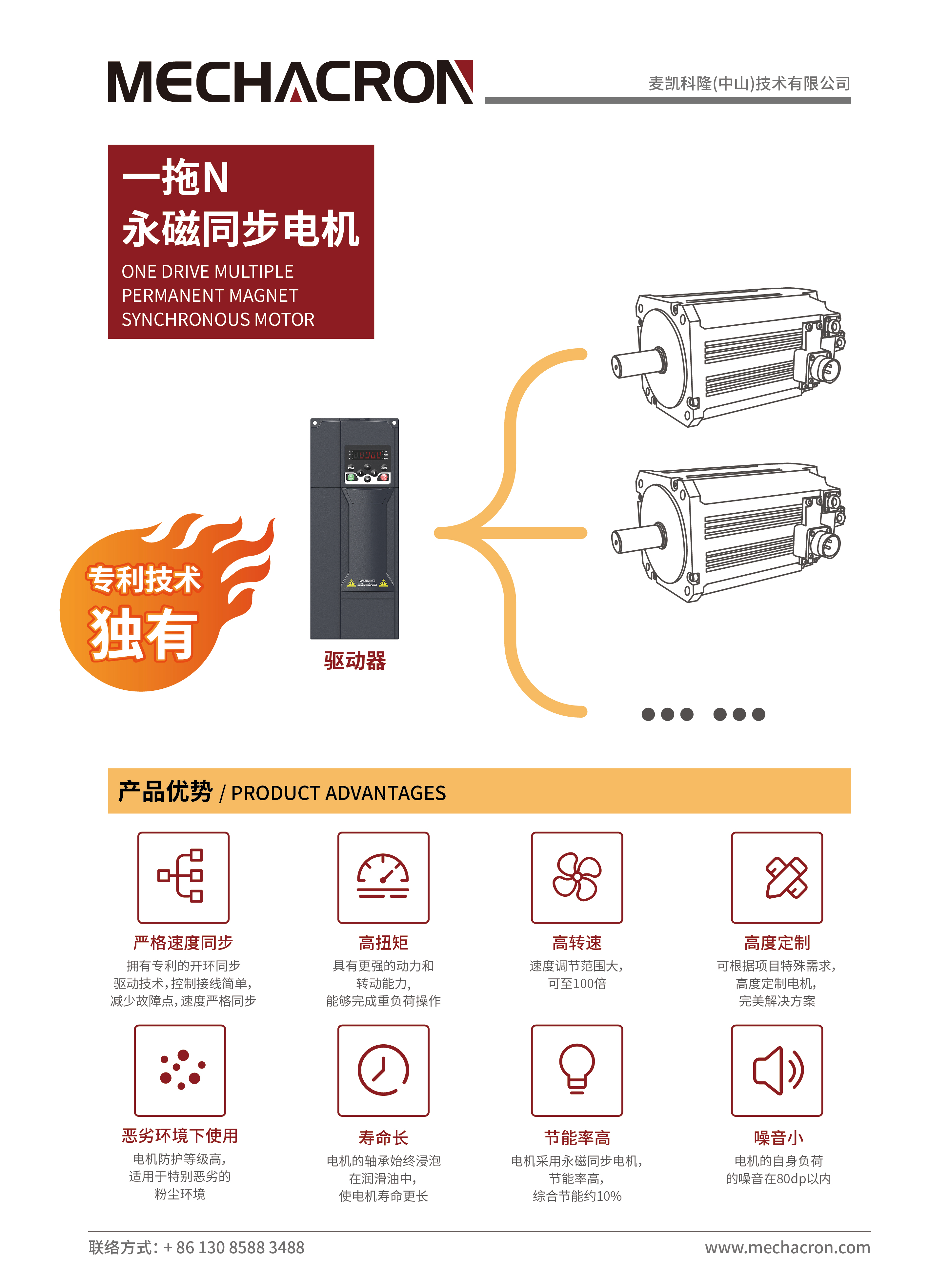 • 拥有专利的开环同步驱动技术,控制接线简单,减少故障点,速度严格同步;