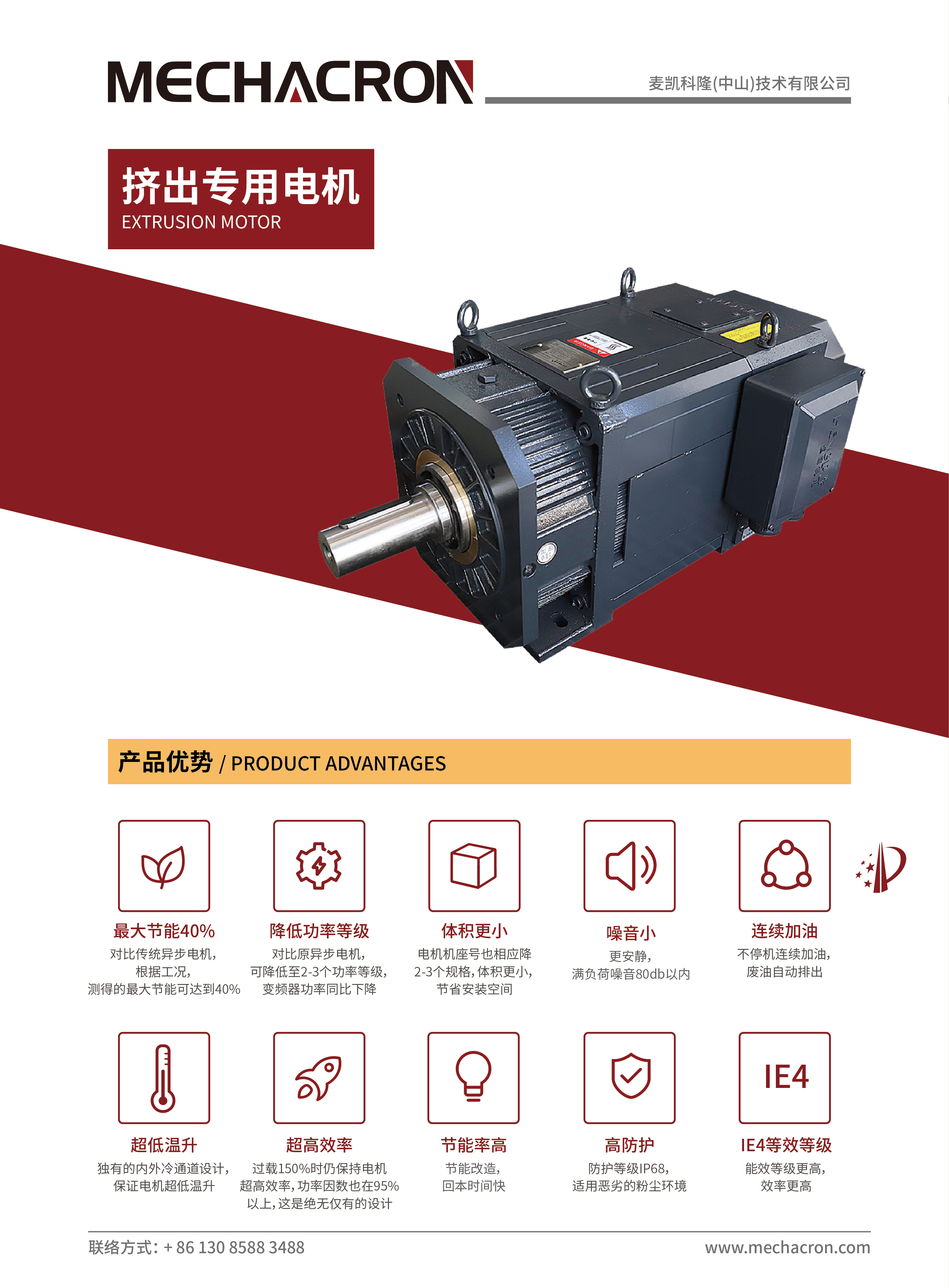 • 独有的内外冷通道设计,保证电机超低温升;